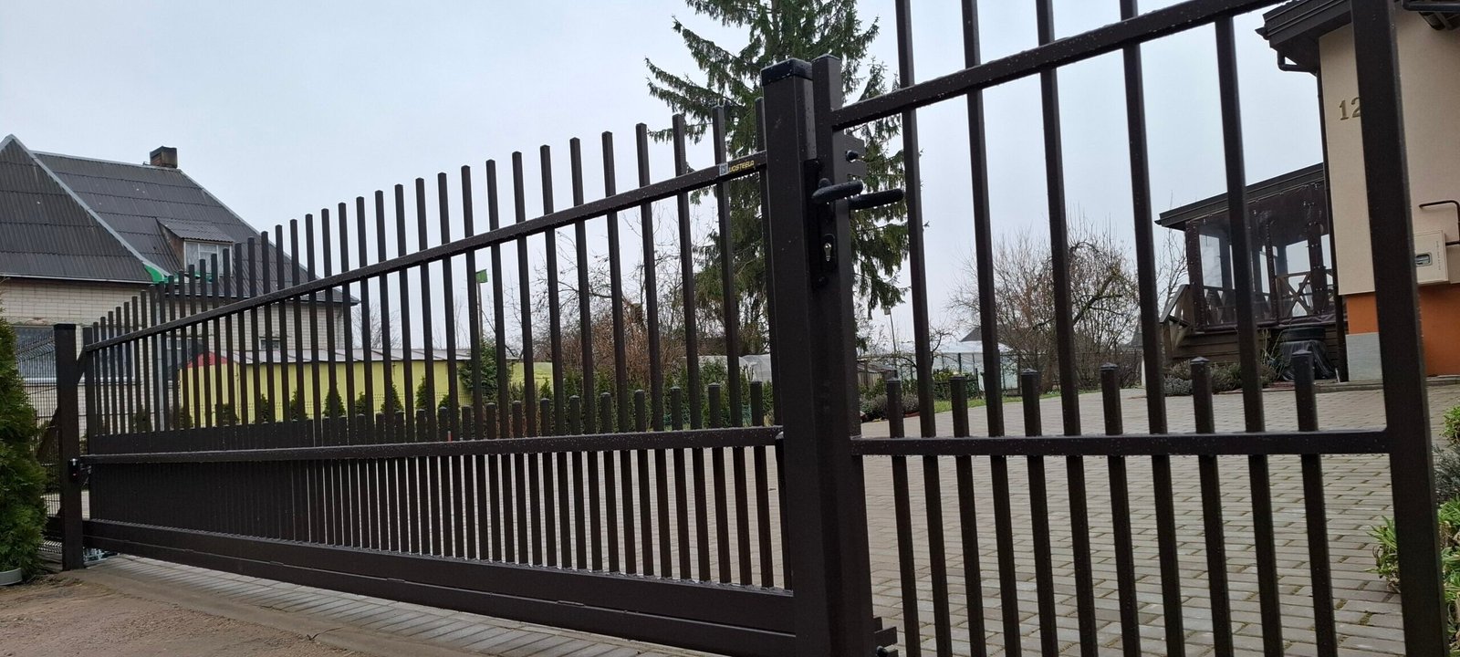 Visiškai taip. Mes projektuojame ir gaminame vientisą ansamblį: nuo dekoratyvinių vartelių su patikimomis spynomis iki stumdomų ar dviverių vartų su identišku kuoliukų užpildu.